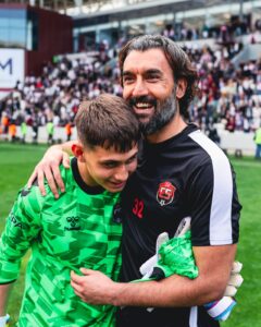 Takım arkadaşı olmayan formayı, bantlarla bedenine göre uyarlayarak sahaya çıkan genç eldiven, sergilediği cesaretle herkesi kendine hayran bıraktı.
